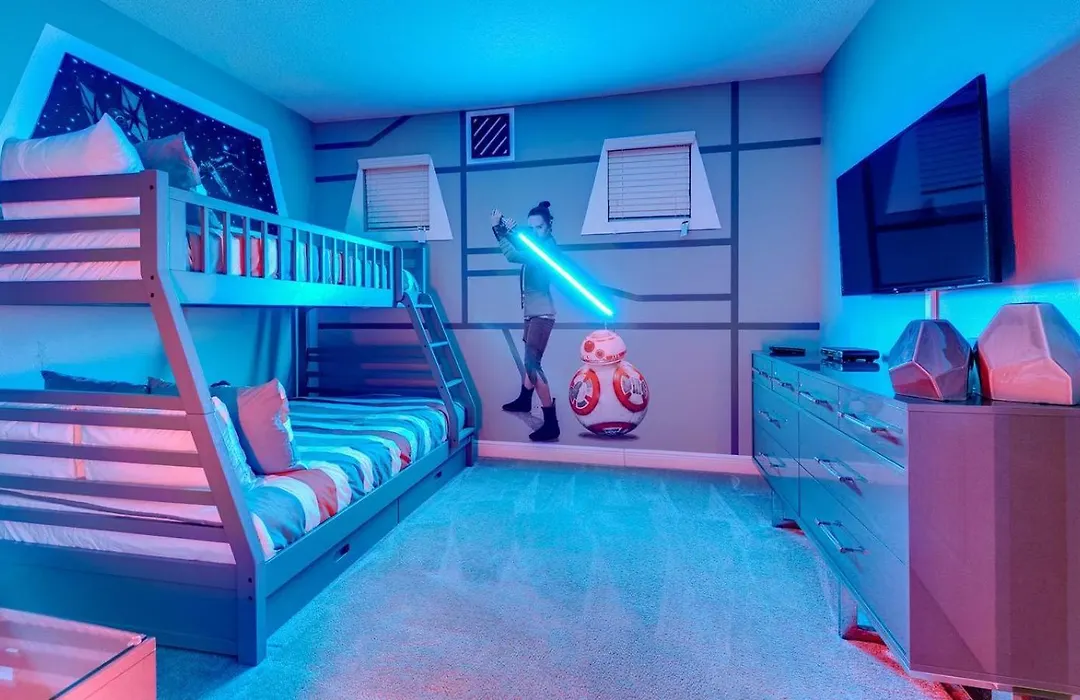 De gesitueerde in Orlando Sleek 5 Bdrm Home With Fun Themed Bedroom At Encore Orlando is op 10 minuten rijafstand vanaf A World of Orchids gelegen en biedt een zwembad, wat zorgt voor een ontspannen verblijf.